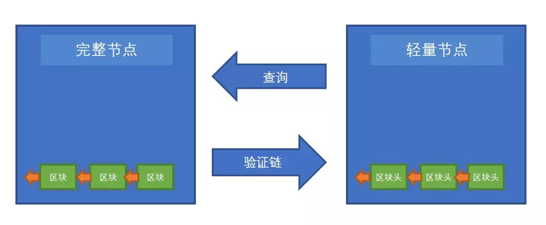 举例子来说,每个全节点就像是一个带着非常详尽、涵盖街道地区的完整地图的游客,因此它可以随时通过翻阅地图,了解到它所想知道的信息。而轻量客户端就像是带着手机的游客,它只知道它的目的地名字,它需要通过手机从另外拥有完整地图的陌生游客那里获取它的行进路线。